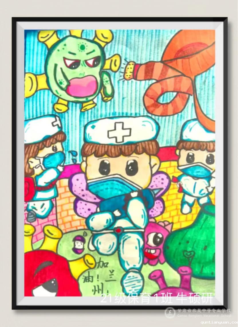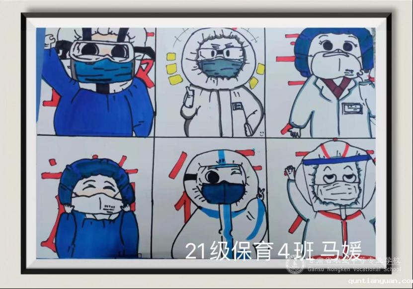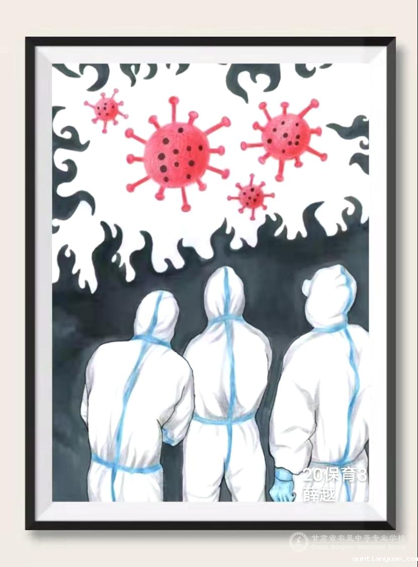 我校同样也有一群逆行者,这就是我们的校领导和一线教师。为抗击疫情,他们舍小家为大家,在封校的日子里选择了与学生共度,使学生无惧疫情,专心学业,大爱无私的奉献精神令人敬佩。感动之余,我们明白了这场没有硝烟的战争里,每个人都可以成为一名坚强勇敢的战士。我们组织学生,结合本学期所学专业课程,特别绘制出一批“抗疫”绘画作品,以此致敬在疫情救治防控的一线人员,致敬那些最美的逆行者。