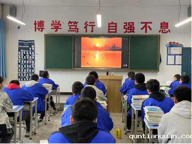 八点,早餐填饱肚子,知识滋润灵魂。第一节课开始了,同学们打开电子白板,同线上老师问声好,开始了新知识的学习,一根网线连起一段走向知识的路,一次授课承载深重的师生之情,空间上的距离无法阻隔师生们相遇在知识的天地。