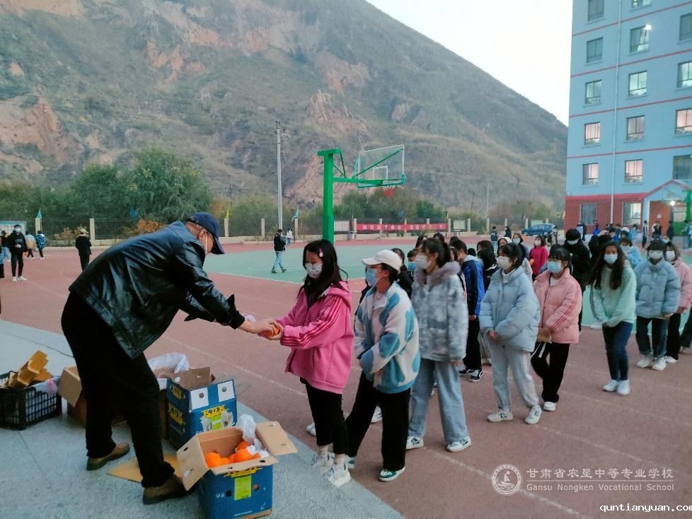 为进一步做好疫情期间我校学生的生活保障工作,改善学生膳食营养,增强学生身体素质,保证学生身体健康。11月5日下午,学校为全校学生发放时令水果,充分体现了学校对莘莘学子的关怀关爱。