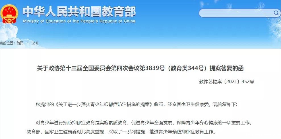 教育部明确将抑郁症筛查纳入学生健康体检。关于抑郁,这些常识老师家长一定要了解! 发布日期:2021-11-15